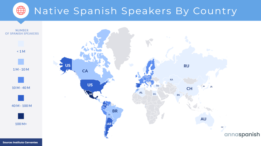 | Native Spanish Speakers | 45.5 million | 47.25 million | Spain (+1.75 million) |
